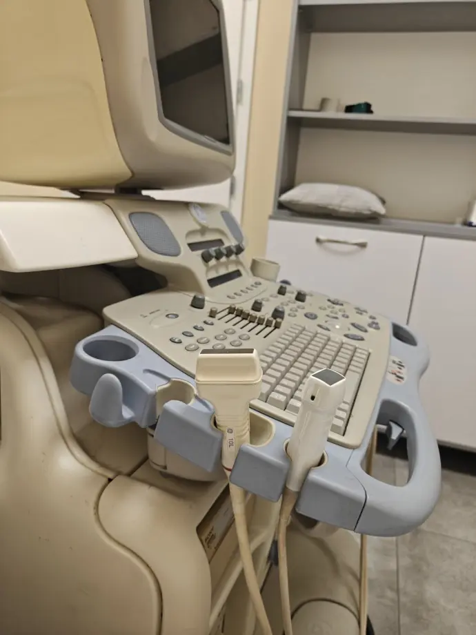 Апарат Vivid 7 с кардио-васкуларни софтуерни пакети.Към апарата има линейна и фазово-матрична сонда, както и термопринтер Sony.Използва се ежедневно, работи безпроблемно.